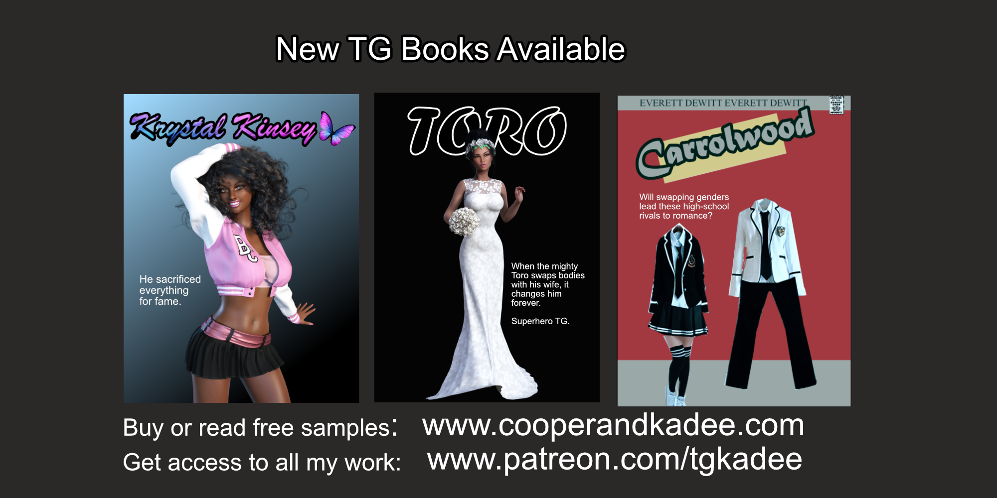 Join now for as little as $3 to receive access to all 9 Chapters plus exclusive early access to all future chapters. Wait. There’s more. You will also receive access to more TG Comics, stories and videos including my archive with over 60 stories and comics.