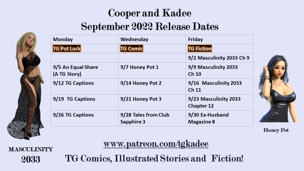 Super spy Buck West sinks deeper into his undercover role as supermodel Coventry Lace and girlfriend of international criminal Deign Warren. Join my Patreon today for exclusive early access to this and other great TG Comics, stories and captions for as little as $6 per month!